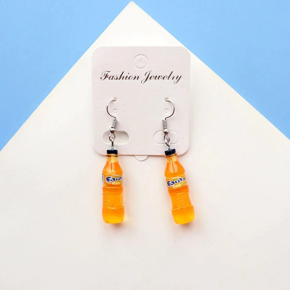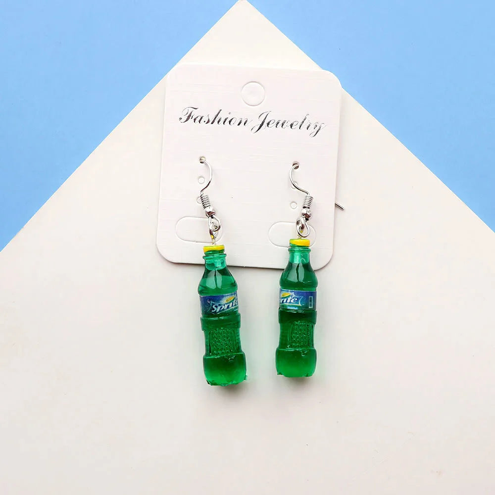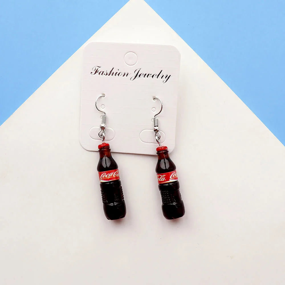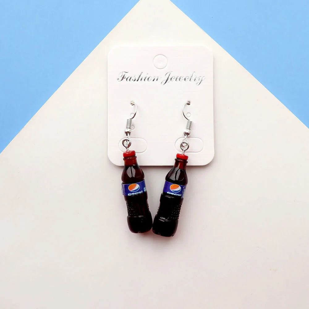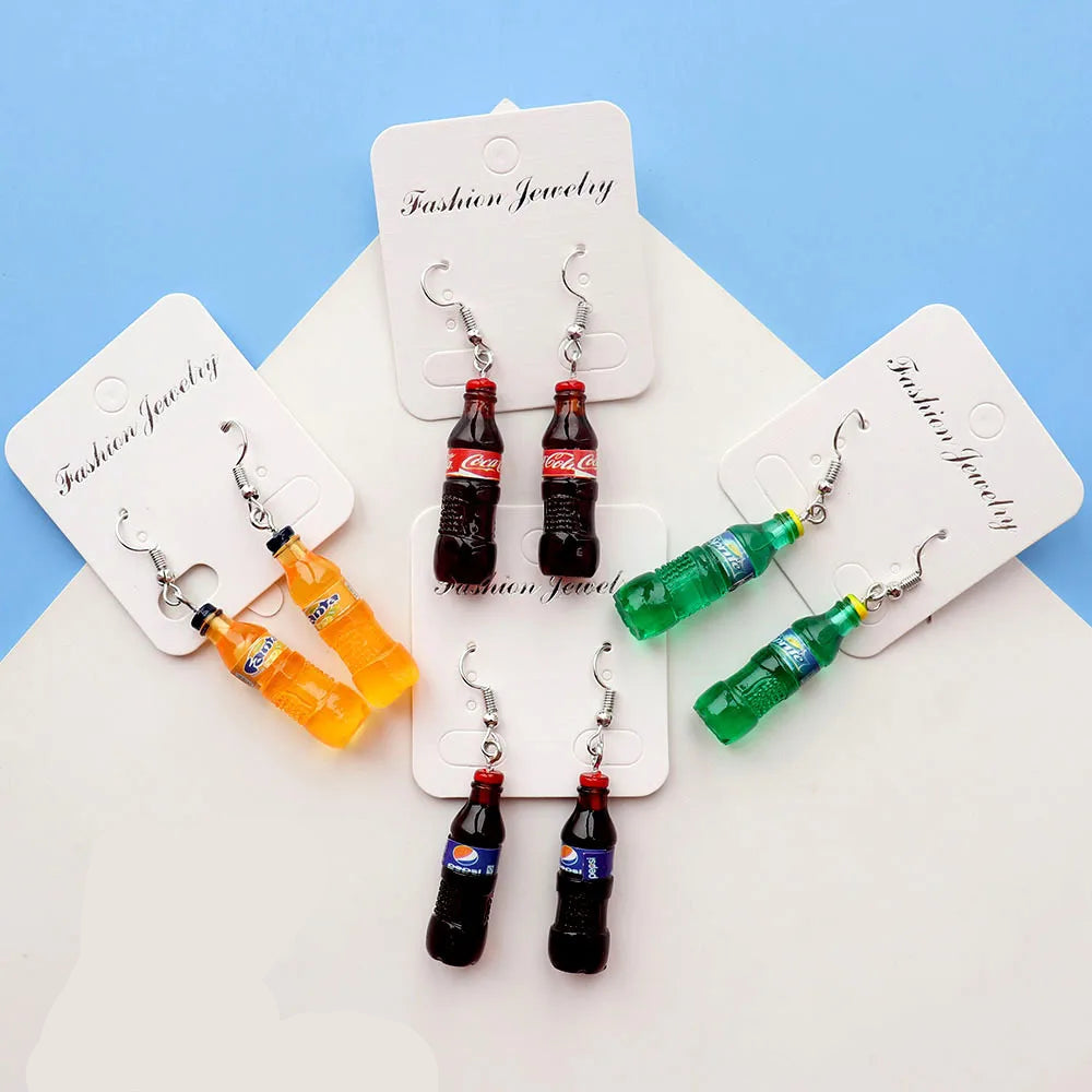 Nostalgic Design: These earrings capture the iconic shapes and colors of popular soda bottles, bringing a touch of retro charm to your look. Choose from a variety of soda brands (like Coca-Cola, Pepsi, and others as shown).